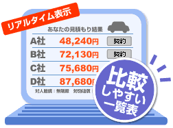 大手損保複数社からの見積りがリアルタイムで表示されます。